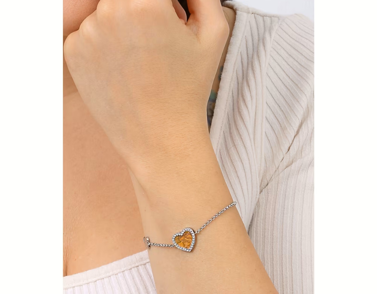 Bracciale in acciaio con zirconi e pelle Geo Map