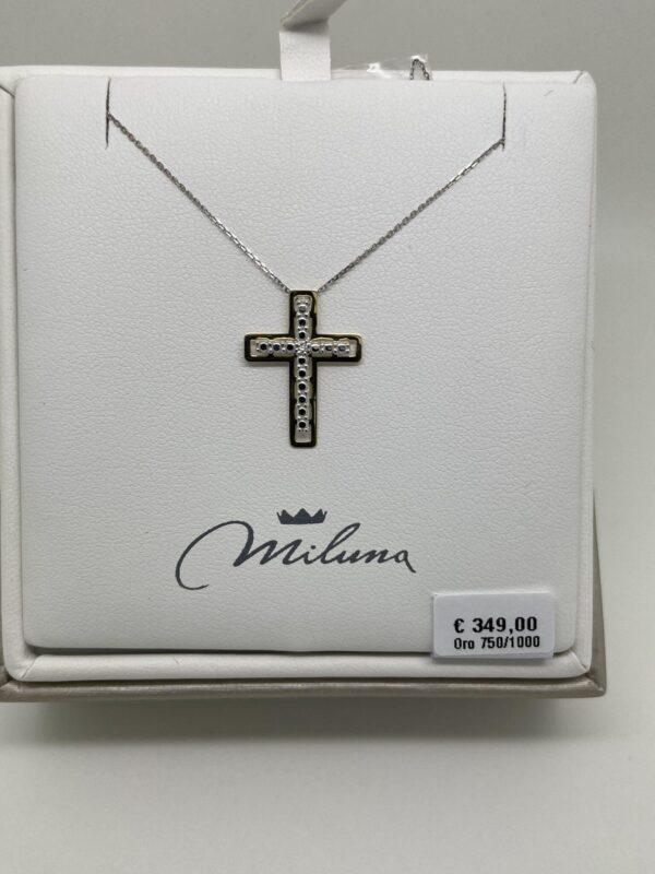 Collana miluna in oro bianco e giallo 18k e diamante naturale ct. 0,06 g color si, lunghezza 42 cm.
