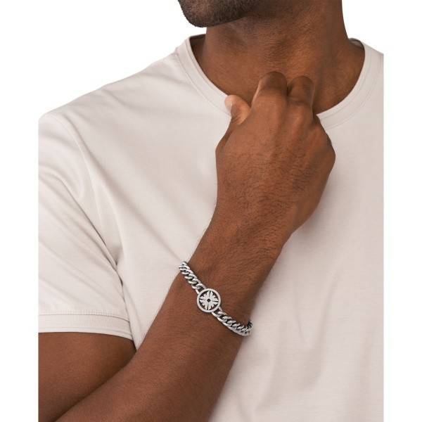 Bracciale da uomo di Armani della collezione Logo Essentials. Gioiello in acciaio inossidabile di colore silver, con finitura satinata.