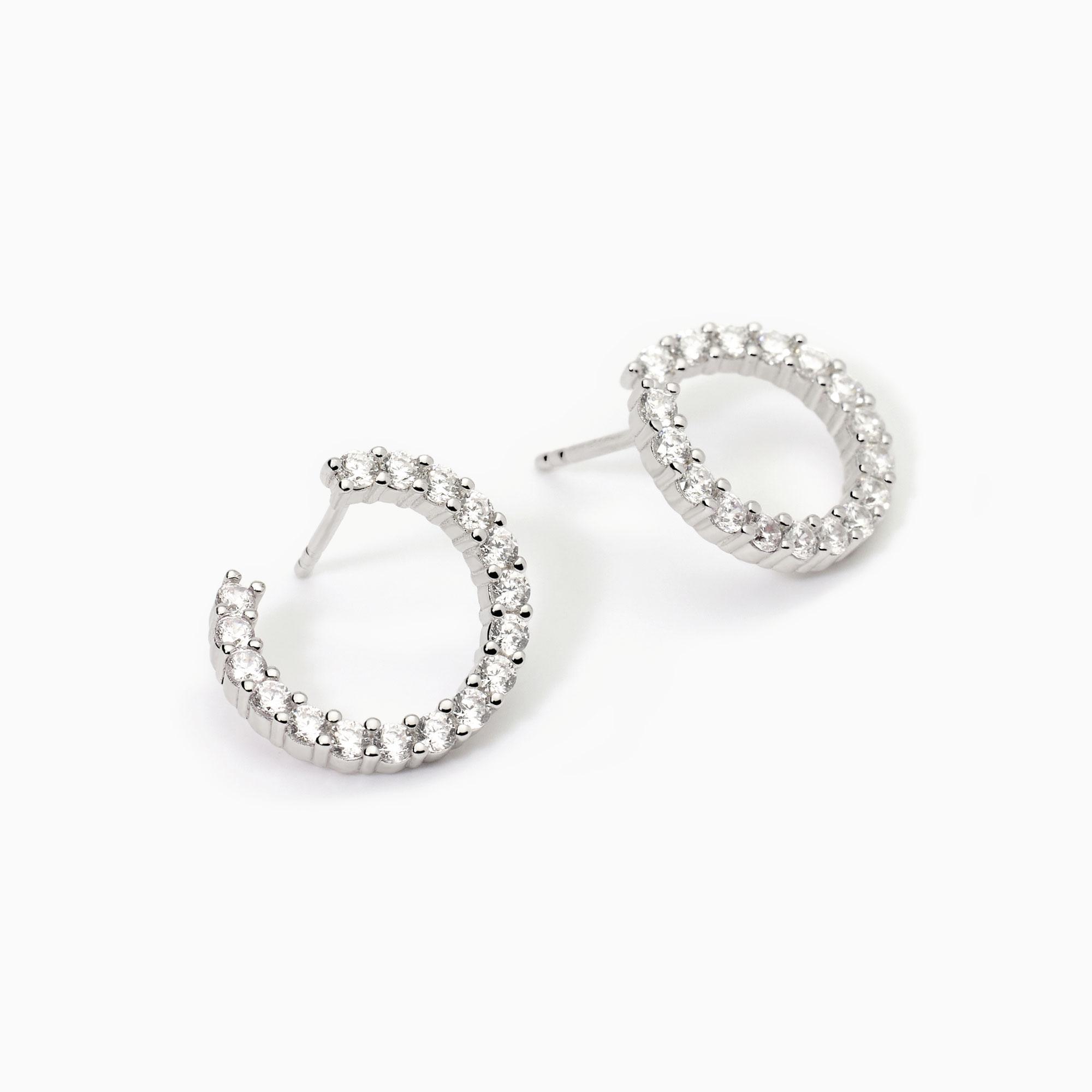 Orecchini a cerchio frontale da donna in argento rodiato con zirconi.