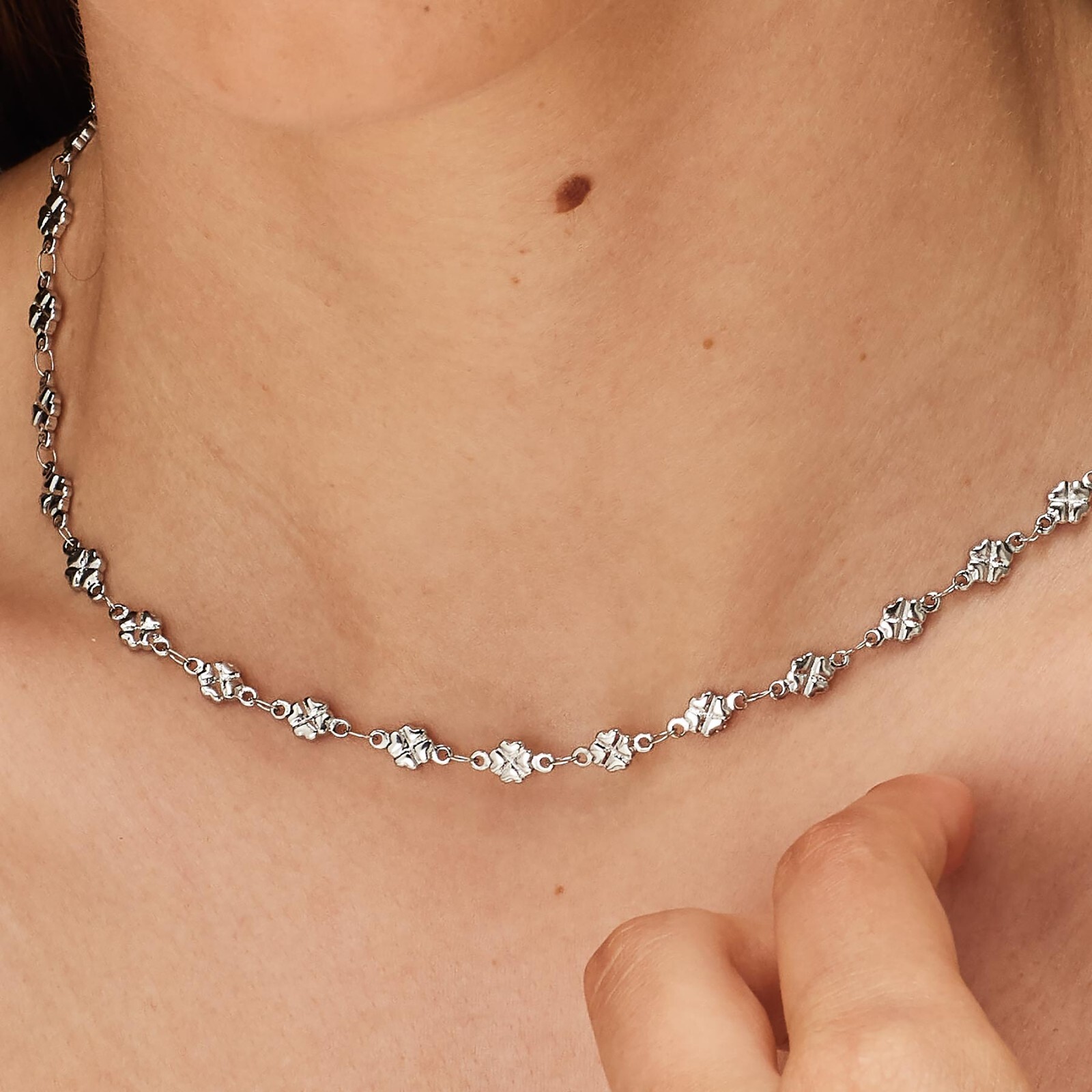 Collana girocollo in acciaio 316L con catena a quadrifoglio