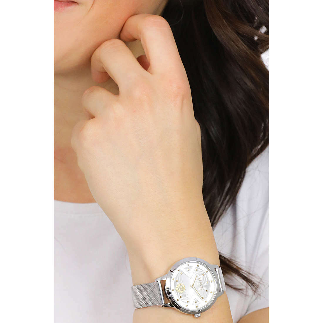 Orologio solo tempo da donna di Versus della collezione Palos Verdes. Orologio solo tempo 2h con cassa in acciaio inossidabile di 34 mm con quadrante color acciaio. Il cinturino è in acciaio inossidabile. Il movimento è al quarzo e display analogico. Impermeabilità fino a 30 metri.